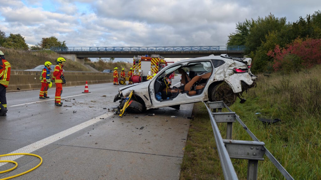 Bei Ankunft an der Einsatzstelle konnte eine Person im Fahrzeug festgestellt werden, die sich nicht eigenständig aus dem Fahrzeug befreien konnte. Wir stabilisierten das Fahrzeug daher umgehend und leiteten Maßnahmen zur Personenrettung mittels hydraulischem Rettungssatz (Rettungsspreizer und ‑schere) ein. Zuvor stellten wir den Brandschutz sicher und sicherten die Unfallstelle ab. Nach der Befreiung des Patienten aus dem Fahrzeug übergaben wir ihn an den Rettungsdienst.