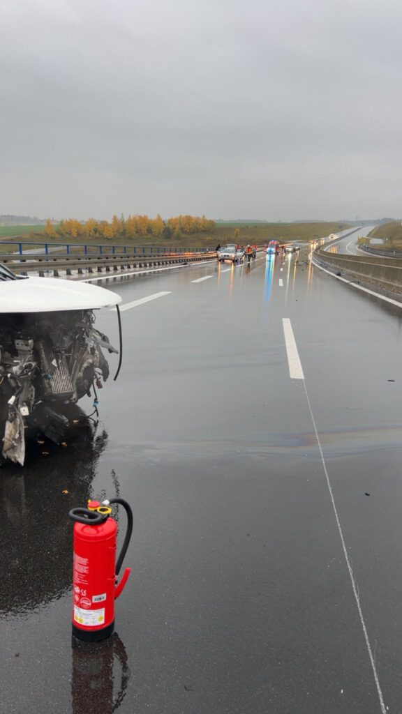 Bis zum Ein­tref­fen der orts­zu­stän­di­gen Feu­er­wehr Ergolds­bach bzw. des Ret­tungs­diens­tes über­nah­men wir die Ver­kehrs­ab­si­che­rung, die Betreu­ung der Pati­en­ten und stell­ten den Brand­schutz mit­tels Feu­er­lö­scher sicher. Nach der Über­ga­be der Ein­satz­stel­le an die Feu­er­wehr Ergolds­bach und die Poli­zei konn­te die Mann­schaft nach ca. 30 Minu­ten die Fahrt fort­set­zen.