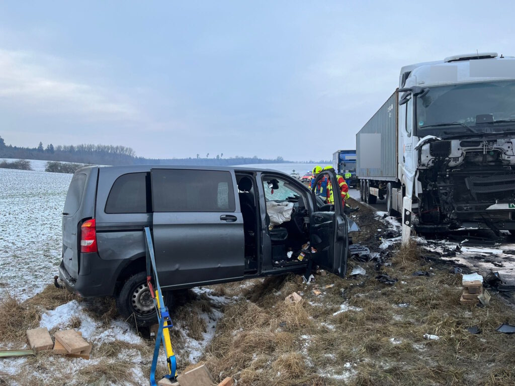 Am Donnerstagnachmittag wurden wir gemeinsam mit vielen weiteren Rettungskräften aus dem südlichen Landkreis auf die St 2615 zwischen Eggmühl und Hagelstadt alarmiert. Laut Erstmeldung soll es dort zu einem Frontalcrash zwischen einem PKW (Kleintransporter) und einem LKW gekommen sein, wobei eine Person eingeklemmt wurde.
